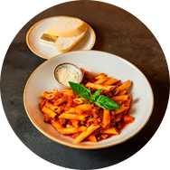Penne pasta served with your choice of home-made tomato sauce (al sugo) or garlic & olive oil (aglio e olio).